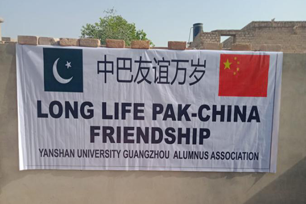 巴基斯坦乡村挂出条幅向我校广州校友会致谢
